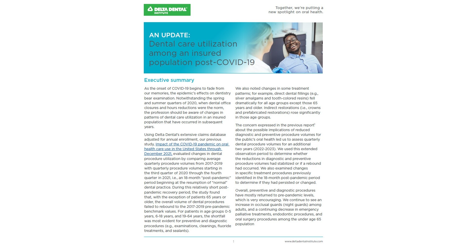 Delta Dental conducts important research using national dental care claims data as part of its continued commitment to producing data-driven insights with actionable solutions for improved oral and overall health.